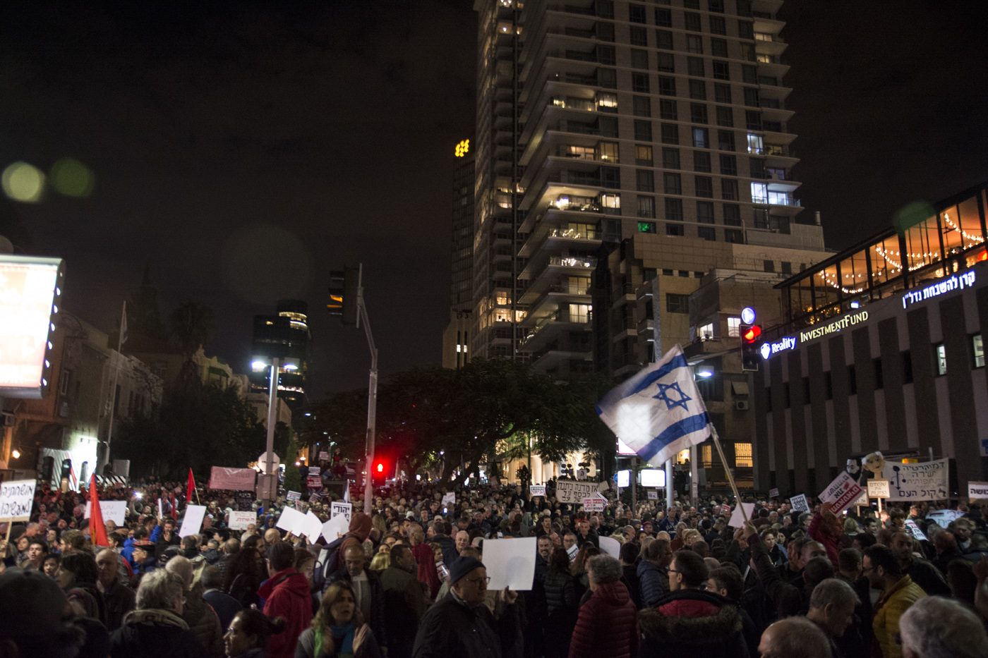 Дети 14ти лет с сигаретами, мат столбом, наркоманы, бутылки пива у каждого третьего демонстранта, штурмующие закусочные многолюдные толпы деревенских, машина Нахман с орущими динамиками на крыше, от которых глохнут слоны на другом конце площади Рабина, автобусы украденные у жителей администрацией поселений для подвозки митингующих в поддержку Беньямина Нетанияу и его жены – всего этого не было сегодня на митинге среднего класса против коррупции Нетанияу, его жены и его соратников....
